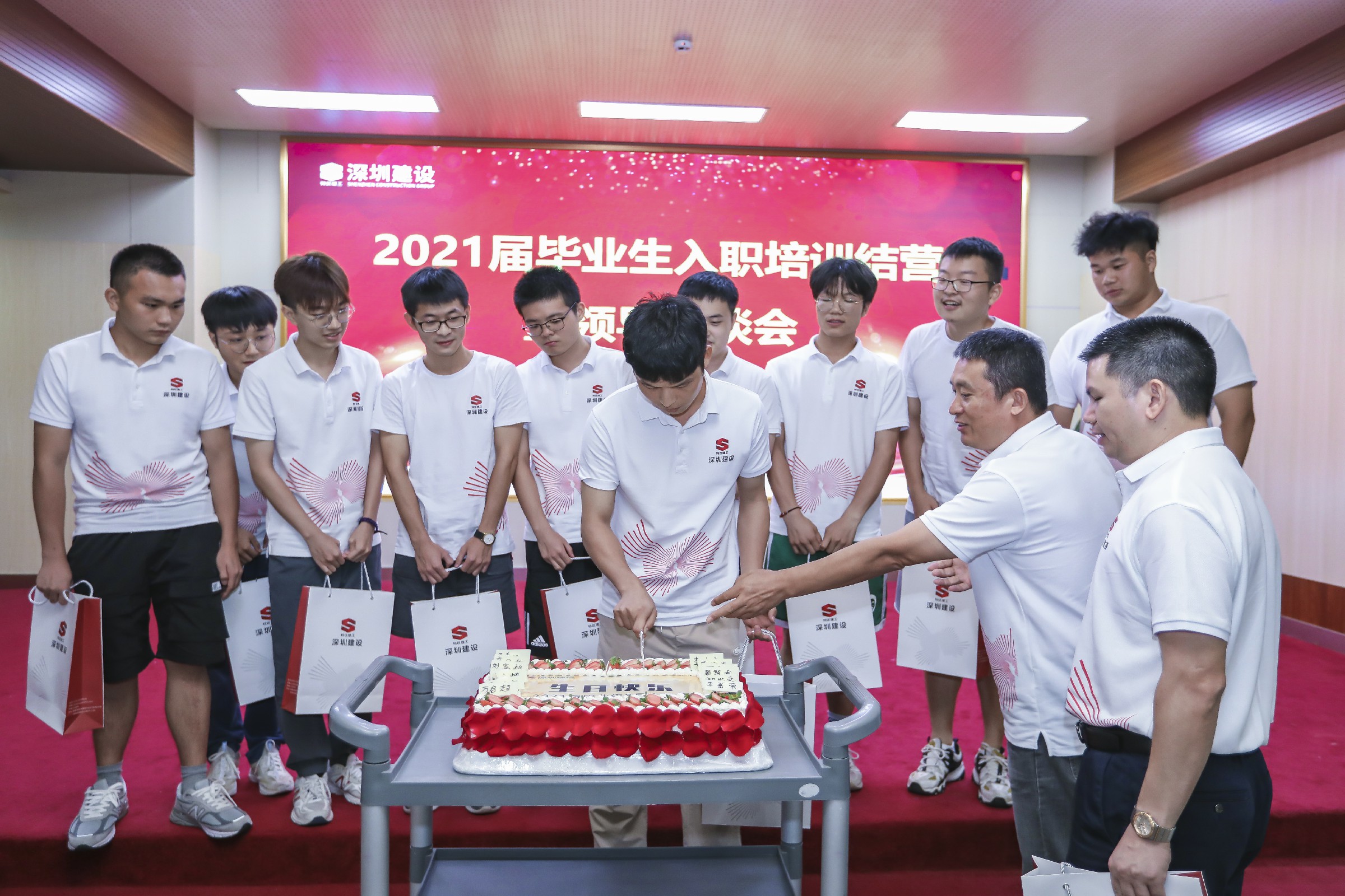 結營儀式演變成為嘉年華,8月份出生的新員工,得到一個大驚喜,集團為他們舉辦集體生日會!收禮物、切蛋糕,齊唱少年,齊唱《建設者之歌》,迎新活動圓滿結營!
