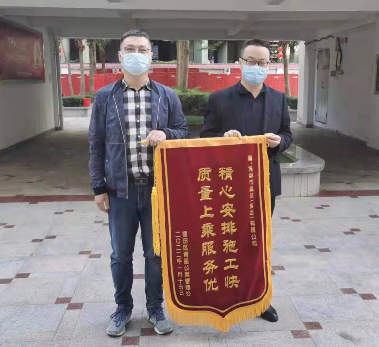 2022年1月21日,福田區(qū)青蓮公寓管理處有關(guān)同志向福田區(qū)第七期優(yōu)質(zhì)飲用水入戶工程(第五批)施工總承包項目部贈送“精心安排施工快 質(zhì)量上乘服務(wù)優(yōu)”的錦旗,項目經(jīng)理毛浣林代表項目部接受錦旗。此外,本項目施工范圍內(nèi)的部分小區(qū)向其他參建方贈送錦旗。  ...